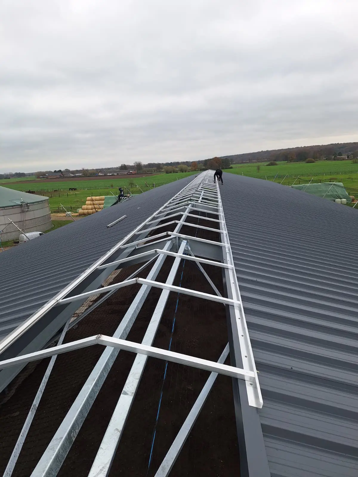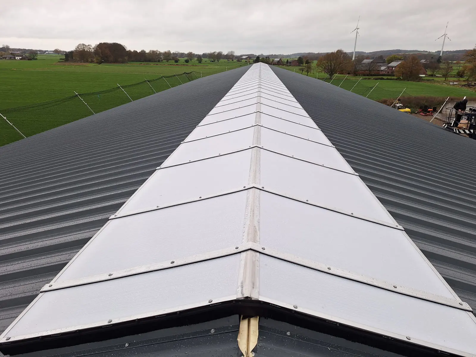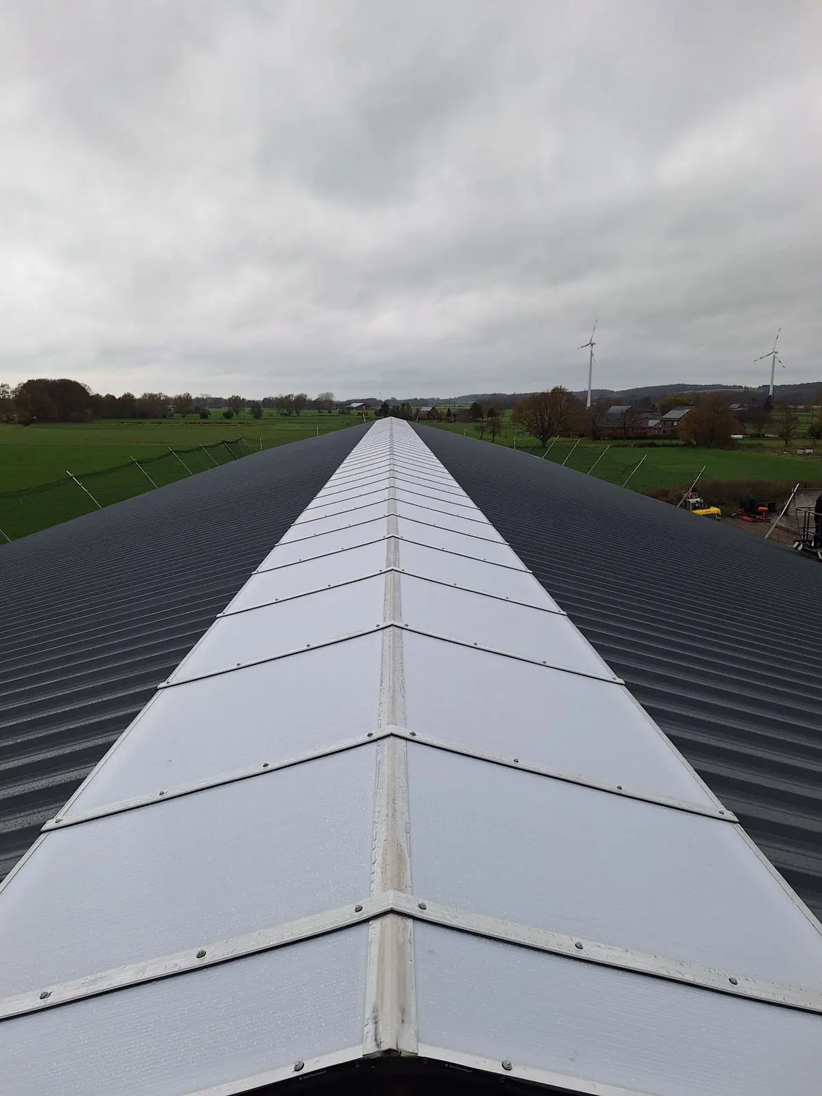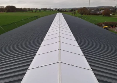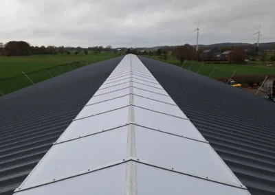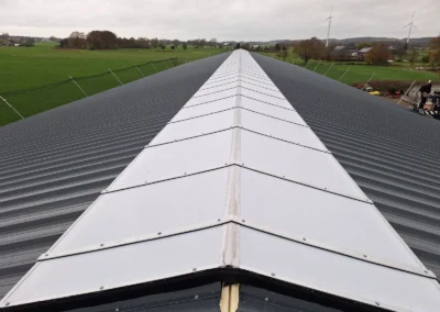 In Alpen heeft Roeleveld Lichtstraten een nieuwe, dichte zadeldak-lichtstraat geplaatst. De lichtstraat is uitgevoerd met opalen polycarbonaat platen, die zorgen voor een gelijkmatige lichtverdeling zonder hinderlijke directinstraling. Deze oplossing biedt voldoende daglicht, extra comfort en een duurzame afwerking die perfect aansluit op het agrarische gebouw.