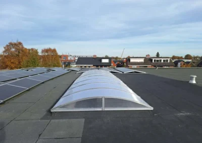 Bij dit project heeft Roeleveld Lichtstraten een bestaande lichtstraat volledig gerenoveerd. Verouderde en verweerde platen zijn vervangen door duurzame polycarbonaat platen, waardoor de lichtopbrengst aanzienlijk is verbeterd. Daarnaast zijn waar nodig profielen en bevestigingen gecontroleerd en vernieuwd. Met deze renovatie is de lichtstraat weer toekomstbestendig, onderhoudsarm en optimaal afgestemd op het gebruik van het gebouw.