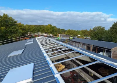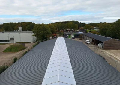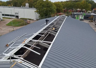 In Roden heeft Roeleveld Lichtstraten een nieuwe, dichte zadeldak-lichtstraat geplaatst. De lichtstraat is uitgevoerd met opalen polycarbonaat platen, wat zorgt voor een gelijkmatige lichtinval zonder directe zoninstraling. Deze duurzame oplossing sluit perfect aan op het dak en draagt bij aan een comfortabel en onderhoudsarm binnenklimaat.